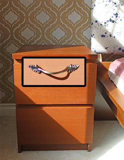 With our table and bed back in place, my handy husby attached a pretty handle to the top drawer before I topped it off with the glass: